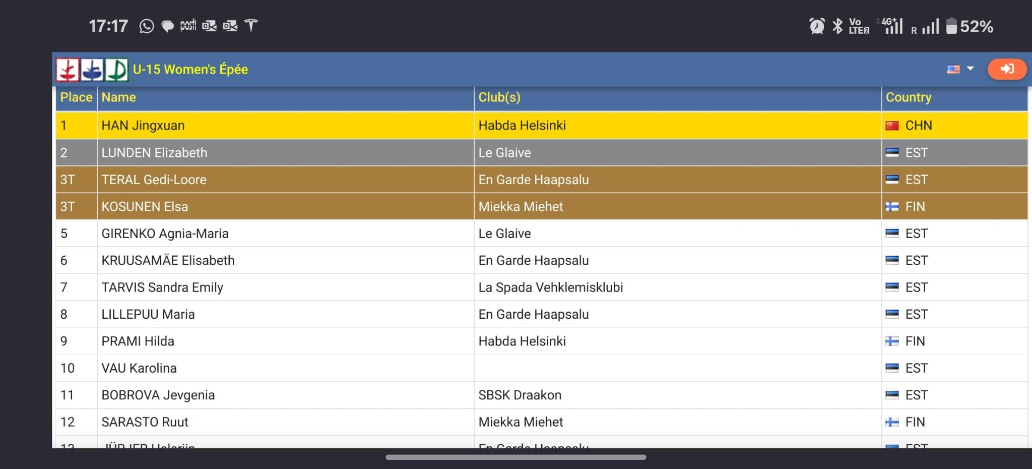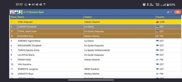 Bei den Turku Masters in Finnland siegte unsere chinesische Fechterin Jingxuan Han im Damendegen der U15. Im Finale bezwang sie die Estin Elisabeth Lunden. In der finnländischen Rangliste steht sie auf dem ersten Platz. In der sächsischen Rangliste auf Platz 2! Herzlichen Glückwunsch nach Helsinki!