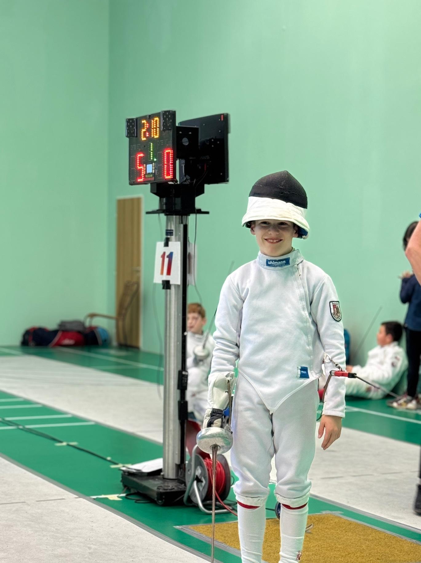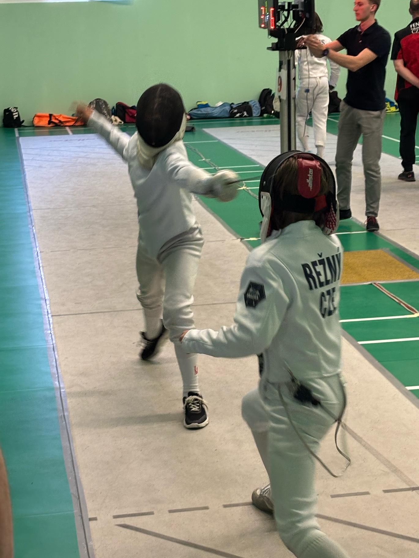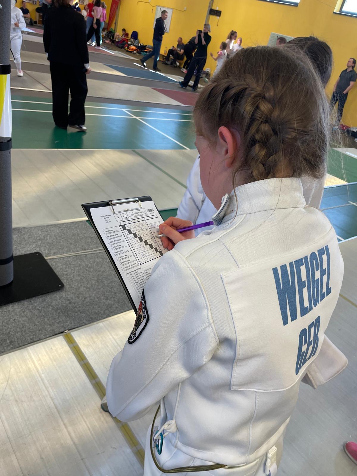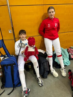Sophia Weigel und Pauline Drummer traten im Damendegen der U11 an. Mit 3 Siegen und 4 Niederlagen ging es für Pauline in das KO. Hier verlor sie leider und belegte am Ende den 21. Platz. Sophia konnte nach 5 Siegen und 2 Niederlagen als Neunte ins KO starten und schaffte es mit Siegen bis ins Viertelfinale und unterlag hier nach großem Kampf der späteren Siegerin Anežka Fáberová (ŠERM Liberec) mit 11:15. Am Ende war es ein starker 7. Platz!